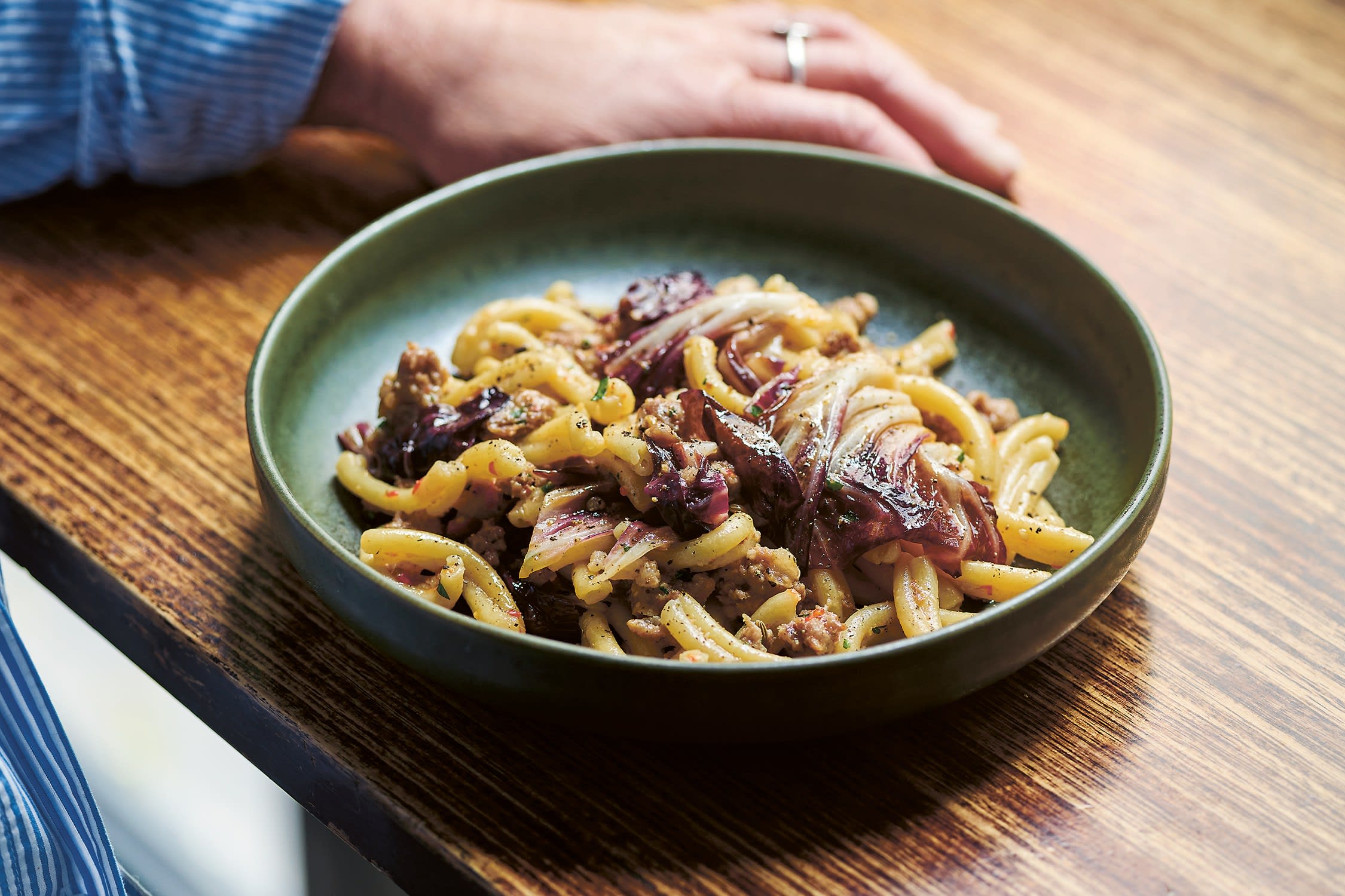If this is your first time making pasta try the garganelli with ragù Bolognese. It takes a bit of time to individually roll the garganelli but the shape is forgiving even if your squares aren’t perfect.