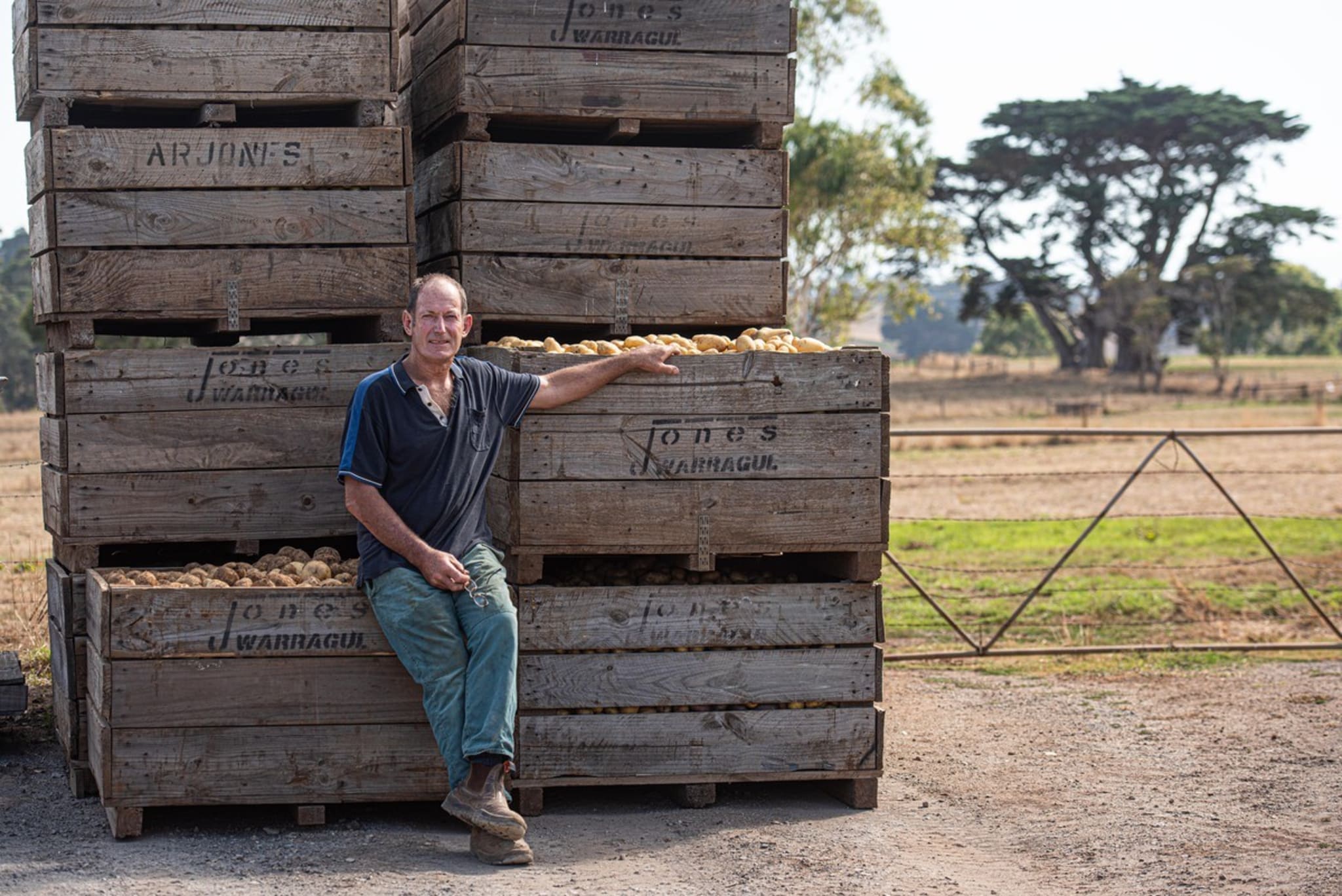 The spuds grown by Jones Potatoes are considered some of the best in the country, savoured by chefs who appreciate not only the range of different varieties but the full flavour and great texture. Gordon and Lyn Jones farm the deep, rich red clay loam that covers their property at Warragul South, 110 kilometres east of Melbourne, in the foothills of the Strzelecki Ranges. Gordon’s family has been farming in the district since the late 19th century, originally growing potatoes and raising pigs and dairy cattle. Gordon’s father Alan started specialising in potatoes.